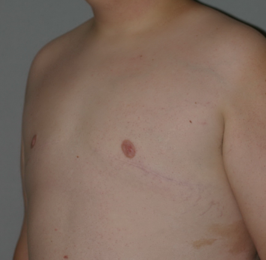 Patient 9 Back to Gallery | Gynecomastia | Patient 9 Previous Excision of gynecomastia with nipple grafting